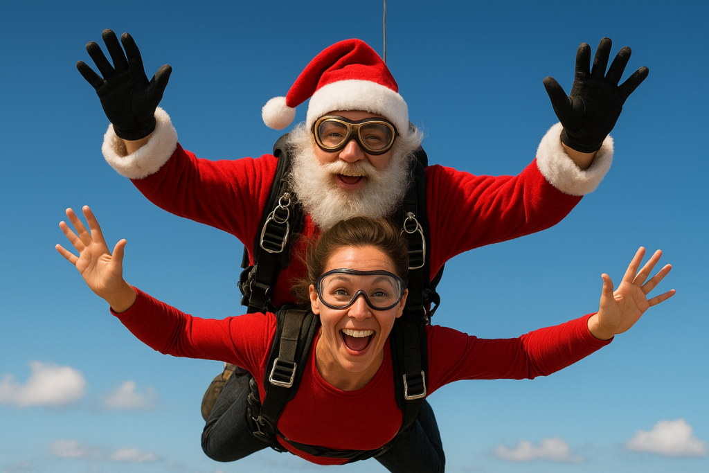 À l’approche de Noël, offrir un saut en parachute tandem est une idée de cadeau aussi originale que mémorable. Plutôt qu’un objet qui finira au fond d’un placard, vous offrez une véritable montée d’adrénaline. Un moment suspendu à 4 000 mètres d’altitude qui restera gravé à vie. Le saut en tandem permet à tout le monde, même sans expérience, de vivre la chute libre en toute sécurité. Vous êtes solidement attaché à un moniteur diplômé. C’est le cadeau parfait pour un proche en quête de sensations fortes, pour marquer un anniversaire de couple, célébrer la fin d’année. Ou simplement réaliser un rêve longtemps repoussé.